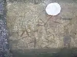 A carving on the Capringstone Burn bridge, close to the old Overtoun Miner's Row and School.
