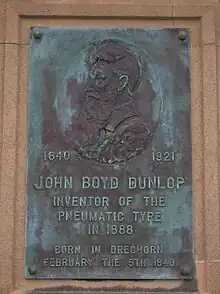 A memorial plaque to John Boyd Dunlop at Dreghorn.