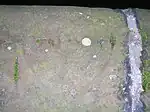 Red sandstone milestones were positioned every mile. Only one survives in the hedge opposite the entrance to the upper Law Mount field, indicating Stewarton 1-mile (1.6 km) and Irvine 634 miles, another was positioned opposite the entrance to Mid Lambroughton farm and as with the others the only remaining clue is a 'kink' in the hedgerow as seen near Langlands Farm. The milestones were buried during the Second World War so as not to provide assistance to invading troops, German spies, etc. (Wilson 2006). This seems to have happened all over Scotland, however Fife was more fortunate than Ayrshire, for the stones were taken into storage and put back in place after the war had finished (Stephen 1967–68).