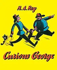 Curious George is a children's book written and illustrated by Margret Rey and H. A. Rey, and published by Houghton Mifflin in 1941.[1] The first book in the Curious George series, it tells the story of an orphaned monkey named George and his adventures with the Man with the Yellow Hat.[2] For 80 years (as of May 1, 2021), it has sold over 25 million copies, and has been translated into various different languages such as Japanese, French, Afrikaans, Portuguese, Swedish, German, Chinese, Danish, and Norwegian.[3] It is also in the Indie Choice Book Awards Picture Book Hall of Fame[4] and has been the subject of scholarly criticism.