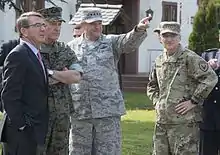 Curtis Michael "Mike" Scaparrotti (born March 5, 1956) is a retired United States Army four-star general who last served as the commander of United States European Command. He concurrently served as NATO's Supreme Allied Commander Europe.[2][3] Scaparrotti previously served as the director of the Joint Staff. Prior to his tour with the Joint Staff, Scaparrotti served as commander, International Security Assistance Force Joint Command and deputy commander, U.S. Forces – Afghanistan, the commanding general of I Corps and Joint Base Lewis-McChord, and the commanding general of the 82nd Airborne Division.[4]