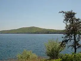 Cushetunk Mountain (formerly Mount Ployden and Pickel's Mountain[2] occasionally Mount Cushetunk or Coshanton[3]) is a ring shaped mountain in the U.S. state of New Jersey, located in Readington and Clinton Township in Hunterdon County. The Lenape Native Americans called the mountain "Cushetunk" meaning "place of hogs" after the wild hogs found there.[4] In the 1960s, the valley at the heart of the mountain was dammed and filled with water to create Round Valley Reservoir. Today, the mountain and its accompanying lake act as a vital water supply to Central New Jersey, while at the same time providing numerous recreational opportunities to the region.
