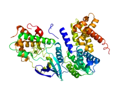 - 1 2 3 Reutens AT, Fu M, Wang C, Albanese C, McPhaul MJ, Sun Z, Balk SP, Jänne OA, Palvimo JJ, Pestell RG (May 2001). "Cyclin D1 binds the androgen receptor and regulates hormone-dependent signaling in a p300/CBP-associated factor (P/CAF)-dependent manner". Molecular Endocrinology. 15 (5): 797–811. doi:10.1210/mend.15.5.0641. PMID 11328859.