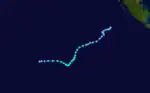 An area of convection, or thunderstorms, formed on December 24 between St. Brandon and Diego Garcia.[9] On the next day, it developed into a tropical disturbance, although it quickly intensified to moderate tropical storm status by December 26,[10] resulting in the Mauritius Meteorological Services naming it Bernandro.[9] By that time, the storm was moving to the east, although soon after it turned to the south and then west.[10] On December 27, the JTWC began tracking Bernandro, classifying it as Tropical Cyclone 05S.[2] The storm vacillated in intensity between tropical storm and depression statuses for several days due to persistent wind shear, reaching peak winds of only 65 km/h (40 mph). On December 31, Bernandro passed about 140 km (87 mi) north of St. Brandon as a tropical disturbance.[9] Although the JTWC tracked the storm westward into northeastern Madagascar, the MFR followed the center as turning to the south and southeast. Bernandro passed about 60 km (37 mi) north of Réunion on January 2 before passing between there and Mauritius as a tropical depression. The weak system turned to the south, and it was no longer classified as a tropical depression on January 4.[10] The remnant circulation persisted for several days.[9] After a brief turn to the northwest on January 5, it resumed its southerly motion, dissipating on January 8.[9][10]