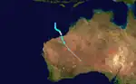 A low-pressure developed east of the 90th meridian east or the border of the basin on 26 December, and had a moderate chance of intensifying into a tropical cyclone.[27] TCWC Perth later classified it as a weak tropical low with the identifier of 06U.[28] On 28 December, as the low slowly moved south, unfavorable environments hinder the chance of being a cyclone.[29] TCWC Perth made its final bulletin of the tropical low as it slowly drifted west on 29 December.[30] During 19 January Tropical Low 07U developed within the monsoon trough of low pressure, about 300 km (185 mi) to the west of West Island in the Cocos (Keeling) Islands.[31] Over the next couple of days, the system moved north-eastwards and tried to develop further in a marginally conducive environment for further development.[32] However, the system weakened on 21 January, before it was last noted on 24 January, as it was not expected to develop into a tropical cyclone.[33][34] During 14 February a weak tropical low lied in an area of marginal conditions for further develop near Christmas Island.[35] Over the next couple of days, environmental conditions surrounding the system became less favorable for further development, before the system was last noted during 16 February.[35][36] During 26 February, Winston entered the basin as an extratropical cyclone, whilst the JTWC classified it as a subtropical cyclone;[37][38][39] ultimately, it made landfall over Queensland as a tropical low and quickly degenerated into a trough, on 3 March.[40][41][42][43]