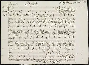 - ↑ A musical "autograph" is a manuscript written in the composer's hand writing.[24]