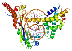- ↑ Mermelstein F, Yeung K, Cao J, Inostroza JA, Erdjument-Bromage H, Eagelson K, et al. (April 1996). "Requirement of a corepressor for Dr1-mediated repression of transcription". Genes & Development. 10 (8): 1033–48. doi:10.1101/gad.10.8.1033. PMID 8608938.