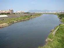 The Dahan River (Chinese: 大漢溪; pinyin: Dàhàn Xī; Pe̍h-ōe-jī: Tāi-hàn-khe, also spelled Tahan) is a river in northern Taiwan. It originates in Hsinchu County and then flows through Taoyuan City and New Taipei City for 135 km, before it joins Xindian River in Taipei to form the Tamshui River. The upper reaches of the Dahan are also known as Takekan Creek (Chinese: 大嵙崁溪; Pe̍h-ōe-jī: Toā-kho-khàm-khe) or Taigang Creek (泰崗溪). An alternative historical name for the Dahan is the Shihmen River (石門溪).