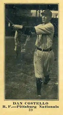 Daniel Francis "Dashing Dan" Costello (September 9, 1891–March 26, 1936) was a Major League Baseball outfielder. Costello played for the New York Yankees and the Pittsburgh Pirates from 1913 to 1916. In 154 career games, he had 85 hits, 24 RBIs and a .243 batting average. He batted left and threw right-handed. Costello was born in Jessup, Pennsylvania, and died in Pittsburgh, Pennsylvania.