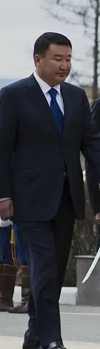 He was born in the winter of 1963 in the city of Dalanzadgad in the Ömnögovi Province. From 1971-1981, he received his secondary education at the Ömnögovi Secondary School, located in his birth province. In 1990, he became the President of the Ajnai Corporation. For 12 years after 1992, he served as a methodologist and teacher at the National Defense University before entering politics. From 2004-2008, he was a member of the State Great Khural, the Mongolian legislature.[1] In 2012, President Tsakhiagiin Elbegdorj appointed him to the post of Minister of Defence.[2][3] In April 2014, towards the end of his term, he presented visiting U.S. Secretary of Defence Chuck Hagel with a traditional Mongolian horse.[4][5][6]
