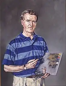 Regarded as one of the U.K's foremost portrait painters,[2] David Griffiths' large output of work include portraits of royalty, ambassadors, archbishops, Lords Chancellor, distinguished parliamentarians, and well-known musicians and actors.[3] It was his portrait of Prince Charles on the occasion of Charles' investiture as Prince of Wales in 1969 which brought him to general notice.[1] This remains one of He has also painted William Stamps Farish III (ex-U.S. Ambassador to the United Kingdom), Enoch Powell, and a long list of Welsh notables including Barry John, Gwynfor Evans, John Meurig Thomas, Lord Tonypandy (as Speaker of the House of Commons), Siân Phillips, Bryn Terfel and Sir Geraint Evans.