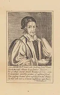 Jenkins was born at Pendeulwyn (English: Pendoylan), Glamorgan, son of a well-established gentry family. He was educated at St Edmund Hall, Oxford, admitted to Gray's Inn on 5 November 1602 and called to the bar in 1609. In March 1643 he was appointed, against his will, as puisne judge of the Carmarthen circuit of the court of great sessions. He was a strong supporter of the Royalist cause in the civil war and, later that year, was involved in raising money for the siege of Gloucester. He indicted several prominent parliamentarians for high treason. Jenkins was captured by the parliamentarians in December 1645 in Hereford after the surprise attack on the city and imprisoned in the Tower of London, Newgate Prison and latterly in Wallingford and Windsor Castles. Whilst in prison in the 1640s, Jenkins wrote a number of political tracts which were collectively published in 1648 as: The Works of the Eminent and Learned Judge Jenkins upon divers Statutes concerning the King's Prerogative and the Liberty of the Subject.