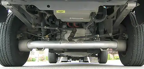 A de Dion tube is a form of non-independent automobile suspension. It is a considerable improvement over the swing axle, Hotchkiss drive, or live axle.[1] Because it plays no part in transmitting power to the drive wheels, it is sometimes called a "dead axle".[2]