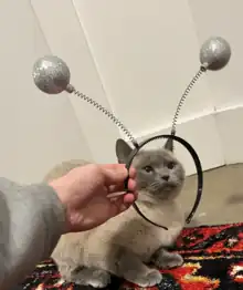 A deely bobber (also deeley bobber or deeley bopper)[1] is a novelty item of headgear comprising a headband to which are affixed two springy protrusions resembling the antennae of insects.[1] These "antennae" may be topped with simple plastic shapes or more elaborate and fanciful decorations, such as mini pom poms or light-emitting diodes. The name "deely bobber" is a genericized trademark;[2] other names include deely-boppers,[3] bonce boppers, head boppers, or space boppers. The product was introduced in 1981 and quickly became a fad of the 1980s. In June 1982, a headline of The New York Times called them Martian antennae.[4]