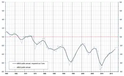 The Government of France has run a budget deficit each year since the early 1970s. As of 2021, French government debt reached an equivalent of 118.6% of French GDP.[65]
