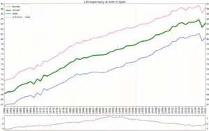 | Life expectancy in Spain | 29.5 | 32.1 | 34.8 | 41.3 | 41.0 | 40.8 | 39.7 | 43.4 | 42.5 | 42.8 | 43.0 | 42.9 | 42.5 | 30.3 | 41.1 | 39.2 |