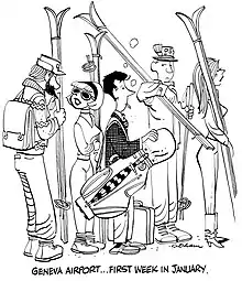 Ketcham's first wife, Alice Louise Mahar Ketcham, died Monday, June 22, 1959, of a drug overdose.[1] The real-life Dennis was 12 when his mother died. Hank and Alice were separated at the time of her death. Three weeks later, Ketcham married Jo Anne Stevens, who he met on a blind date. The family moved to Geneva, Switzerland, where they lived from 1960 to 1977, where Ketcham continued to produce Dennis the Menace. Dennis had difficulty with his schooling, though, so was sent to boarding school in Connecticut, while Mr. Ketcham and his second wife remained in Switzerland. This marriage ended in divorce in 1968.[9]
