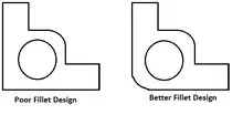 Generously rounded corners provide a number of advantages. There is less stress concentration on the part and on the tool. Because of sharp corners, material flow is not smooth and tends to be difficult to fill, reduces tooling strength and causes stress concentration. Parts with radii and fillets are more economical and easier to produce, reduce chipping, simplify mold construction and add strength to molded part with good appearance.
