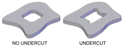 Undercuts should be avoided for ease of manufacturing. Undercuts typically require additional mechanisms for manufacture adding to mold cost and complexity. In addition, the part must have room to flex and deform. Clever part design or minor design concessions often can eliminate complex mechanisms for undercuts. Undercuts may require additional time for unloading molds. It is recommended that undercuts on a part should be avoided to the extent possible.