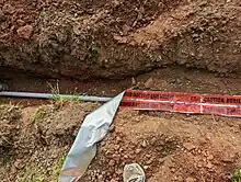 Detectable tape or Underground warning tape is a conductive tape typically applied over buried utilities made of non-conductive materials such as plastic, fiberglass, or cement. It is used because most utility location methods work best on conductive objects, and hence may easily miss structures made of non-conductive materials.