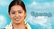 Devathai is an Indian Tamil-language soap opera that airs on Sun TV from 1 July 2013 to 20 August 2016 at 12:00PM IST for 924 episodes.[1] and starring by Subhadra, Bhagya, T. Durairaj and Shobana.[2][3]
