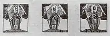 Schluckbildchen had a square, rectangular or round shape and a feed size of 5 to 20 mm. So they were the smallest form of devotional art design. Small pictures of the 19th century were partly bigger, like the version that was produced in Einsiedeln (32x22 mm). Also Schluckbildchen were produced on light sheets of paper; one sheet could hold 130 pieces. Both possible were series of one theme as well as different themes which would always have the same style. Schluckbildchen can be detected after the middle age.[3] Up to the 19th century copper engraving printings were most likely, including some notes (for example in Mariazell) which were produced with a woodcarving technique. Later, colour printing was used; in the 20th century also photomechanical reproduction of old artworks.