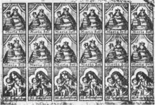 Schluckbildchen were used in either practices of organized religion and folk religion.[9] On August 3, 1903, the Roman Congregation for the Doctrine of the Faith announced that as long as there were no superstitious practices involved, the use of Esszettel was officially granted.[10] According to Eduard Stemplinger on the other hand, on July 29 the same congregation had already decided that swallowing water-soaked paper notes with Madonna images printed on them in order to heal illnesses certainly did not count as superstition.[11]