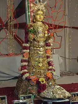 On this day Teej in Jodhpur, one image of Ganaur without Isar, known as Dhinga Gavar, is established at 11 important streets (mohalla) within the old fort wall of Jodhpur. It is worshipped by all women: married, unmarried, and widows.