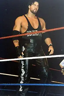 On January 21, 1992, at Clash of the Champions XVIII, he was repackaged as Vinnie Vegas, a wisecracking pseudo-mobster based on Steve Martin's character in the 1990 film My Blue Heaven.[22] Vegas was quickly recruited into "A Half-Ton of Holy Hell", a stable of large wrestlers created by Harley Race which included WCW World Champion Lex Luger, Big Van Vader and Mr. Hughes. The stable separated in February 1992 after Luger left, and Vegas joined the Diamond Mine, a stable led by Diamond Dallas Page that also included the Diamond Studd and Scotty Flamingo.[8][23] In the summer of 1992, after Studd and Flamingo left the stable (Studd leaving for the WWF and Flamingo striking out on his own), Page and Vegas began teaming together as the Vegas Connection.[8] The tag team split in late 1992 after Page was fired by Bill Watts.