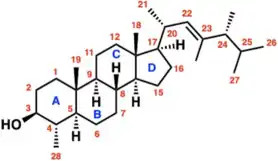 - ↑ Rubinstein, Ian; Goad, L.John (February 1974). "Occurrence of (24S)-24-methylcholesta-5, 22E-dien-3β-ol in the diatom Phaeodactylum tricornutum". Phytochemistry. 13 (2): 485–487. doi:10.1016/s0031-9422(00)91239-1. ISSN 0031-9422.