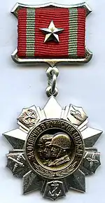 28 October 1974 | This order was awarded for exemplary service in the armed forces, both during a war and during peacetime. A recipient was first awarded a 3rd class order, then if further deeds were made, the second and the first class. Like the civilian Order of Labour Glory upon which it is modeled, it gave a certain number of material benefits to their owners.[22] | 13 |