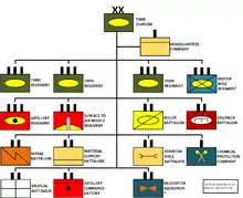 The division slice may not be a good measure for comparisons between different armed forces as different nations may allocate some army work, particularly logistics and transport, to non-military personnel.[1] During the Cold War division slice comparisons between the US armed forces and those of the Soviets, who generally had a smaller division slice value, were used to criticise perceived "extravagances" in the American force.[5] The differences were because of different strategies followed by the Americans and the Soviets. The Soviets, who anticipated that any confrontation with NATO would be a short and violent war, structured their divisions to have a proportionately larger combat element with minimal logistics support.[8] American divisions were structured with larger logistics and combat support elements, which it was felt contributed to a more effective fighting unit.[9]
