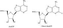 Inhibitors of DNA primases are valuable compounds for the elucidation of biochemical pathways and key interactions, but they are also of interest as lead compounds to design drugs against bacterial diseases. Most of the compounds known to inhibit primases are nucleotide analogs such as AraATP (see Vidarabine) and 2-fluoro-AraATP. These compounds will often be used as substrates by the primase, but once incorporated synthesis or elongation can no longer occur. For example, E. coli DnaG will use 2',3'-dideoxynucleoside 5'-triphosphates (ddNTPs) as substrates, which act as chain terminators due to the lack of a 3' hydroxyl to form a phosphodiester bond with the next nucleotide.[1]