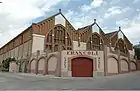 The hospital project was informed by the growing concern at the time about health in the big cities. Domènech studied various solutions that had been used around Europe (Lariboisière Hospital in Paris, St. Thomas's in London, Brugmann in Laeken, Belgium and the military hospital in Toul, France), and devised a totally innovative solution based on isolated pavilions linked by underground passages. With the combination of the Catalan vault and steel structures like those employed at the Tres Dragons and the Palau, large, clear spaces were made possible. The sobriety of the brickwork so typical of Domènech's work is tempered by the warmth of the Montjuïc stone, as is also the case in the Palau de la Música, with sculptures by Pau Gargallo and Francesc Madurell i Torres.[14]