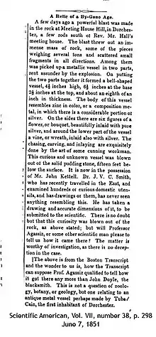 - ↑ Keith Fitzpatrick-Matthews (19 August 2007). "Metallic vase from Dorchester, Massachusetts". Bad Archaeology. Retrieved 16 December 2016.