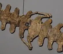 Andrews 1906 described Prozeuglodon atrox (="Proto-Basilosaurus") based on a nearly complete skull, a dentary and three associated vertebrae presented to him by the Geological Museum of Cairo.[2] Kellogg 1936,[6] however, realized that Andrews' specimen was a juvenile, and, he assumed, the same species as Zeuglodon isis, described by Andrews 1906. Kellogg also realized that the generic name Zeuglodon was invalid and therefore recombined it Prozeuglodon isis.[7] Since then many specimens have been referred to Prozeuglodon atrox, including virtually every part of the skeleton, and it has become obvious that it is a separate genus, not a juvenile "Proto-Zeuglodon".[7][8] Kellogg placed several of the species of Zeuglodon described from Egypt in the early 20th century (including Z. osiris, Z. zitteli, Z. elliotsmithii and Z. sensitivius) in the genus Dorudon. Gingerich 1992 synonymized these four species and grouped them as Saghacetus osiris.[7]