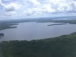 Douglas Lake is an inland lake located in Cheboygan County on the northern tip of Michigan's lower peninsula. It is the 28th largest lake in Michigan with an areal coverage of 3,395 acres (1,374 hectares) and a maximum depth of 79 feet (24 meters). The Lake has two tributaries, Bessey Creek and Beavertail Creek and one outlet, the East Branch Maple River.[3] Douglas Lake is part of the headwaters for the Maple River, a Blue Ribbon trout stream.[4]