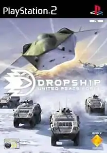 Dropship: United Peace Force is a combat flight simulation video game released exclusively for the PlayStation 2. The player assumes the role of a pilot in the United Peace Force, a fictional multinational military organisation charged with combating terrorism and organized crime across the world. The game itself is set in 2050.