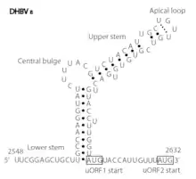 DHBV epsilon consists of a stem structure, a bulge and an apical loop (Fig. 1). The RNA structure was determined by chemical probing, NMR analysis and by mutagenesis.[3]