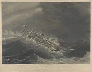 ![]() The East India Ship 'Duke of Buccleuch', (Captn Alexr Henning) in a Hurricane off the Mauritius, attempting to wear; George Philip Reinagle, Edward Duncan, & W.J. Wade –