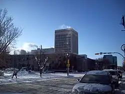 Central Library is located in downtown Regina, on 12th Avenue between Lorne and Smith Street, across Lorne Street from Victoria Park and on the site of the second Carnegie Library. "On December 5, [1962,] the...[current] Central Library was officially opened."[8] In Canada as in the UK, Ireland and the USA, public libraries were amply endowed by the Carnegie foundation and burgesses soon took for granted and the public quickly demanded that such services continue to be funded and provided. In other jurisdictions — Australia is a notably deficient one — where Carnegie did not offer such endowment, the concept of public libraries is largely alien. Sydney, a city of some 2 million, for example, has a public library substantially smaller than that of Regina, a city of some 200 thousand. Its precedent was built after the Regina Cyclone destroyed the original, on the same and today's site (see Regina's historic buildings and precincts).