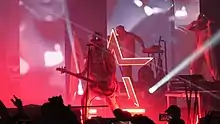 Starset is an American rock band from Columbus, Ohio,[3] formed by Dustin Bates in 2013.[4] They released their debut album, Transmissions, in 2014[5][6][7] and their second album, Vessels, on January 20, 2017.[8] The band has found success in expanding the ideas of their concept albums through social media and YouTube, with the band generating over $230,000 in revenue from views from the latter as of November 2016. Their single "My Demons" had accumulated over 280 million YouTube views in the same time period.[9] Their most commercially successful song, "Monster", peaked at number 2 on the US Billboard Mainstream Rock chart in May 2017.[10] A third studio album, Divisions, was released on September 13, 2019, with their fourth studio album, Horizons, released on October 22, 2021.