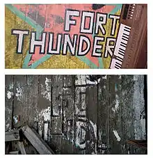 Fort Thunder (1995–2001) was a warehouse on the second floor of a pre-Civil War former textile factory in the Olneyville district of Providence, Rhode Island. From 1995 through 2001, the space was used as a venue for underground music and events, as well as a living and working space for the artists.[1] Fort Thunder was started by Mat Brinkman and Brian Chippendale, who were the space's original residents along with Rob Coggeshal and Freddy Jones.[2] Fort Thunder was known for its colorful posters promoting shows posted on walls around Providence. At various times they hosted costumed wrestling and Halloween mazes. The group of artists who lived and worked there is also sometimes referred to as "Fort Thunder."