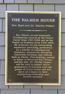 "Rev. Palmer served University Presbyterian Church as the Senior Pastor from 1991 - 2008 and as the Pastor to students from 1956 - 1964. He is known for his outstanding expository preaching, proficiency as a scholar of contemporary literature, passion for discipling University students, and abiding faith in Christ. This building, named in honor of Reverend Earl Palmer and his wife, Dr. Shirley Palmer, will be used to impact future generations of students with the gospel of Jesus Christ and will serve as a legacy to their outstanding leadership and faithful ministry."