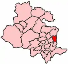 Eccleshill was an independent township up until 1899 when along with Thornton, Tong, Idle and North Bierley it joined with Bradford.[3][18] As of 2004, Eccleshill ward includes the south-east quadrant of Greengates, Thorpe Edge housing estate, part of Five Lane Ends, Bank Top, the eponymous Eccleshill, Fagley and the Ravenscliffe housing estate.[2]