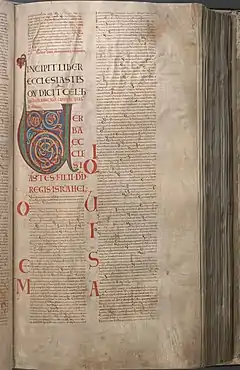 Ecclesiastes 1 is the first chapter of the Book of Ecclesiastes in the Hebrew Bible or the Old Testament of the Christian Bible.[1][2] The book contains philosophical speeches by a character called Qoheleth ("the Teacher"; 'one who speaks before an assembly') composed probably between the 5th and 2nd centuries BC.[3] Peshitta, Targum, and Talmud, as well as most Jewish and Christian readership, attribute the authorship of the book to King Solomon.[4] This chapter contains the title of the book, the exposition of some fundamental observations and the problem of life, especially the failure of wisdom.[5]