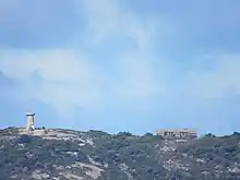 Three family quarters made of brick with fibro roofing along with several outbuildings, concrete tanks and bases, generator shed, helipad and a concrete landing can be found around the lighthouse. A trestle based light gauge railway and cable towers are also found in the lighthouse precinct, and was all constructed during the interwar period.[4]