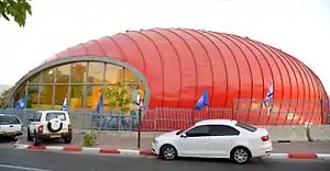 Eilat Tze'elim Sports Centre is located in the Tze'elim neighbourhood north-west of Eilat, Israel. The building offers approximately 2,000 square meters on two levels. The entry level includes the main basketball court, a stage for performances and seating. The lower level features a gym, changing rooms, showers, toilets, and machine rooms. Funding for the building, which cost approximately 12 million NIS (about $3.1 million USD), came from the National Lottery and Eilat municipality.