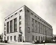 The building is an impressive five-story structure, creating the illusion of a solid limestone mass rising to a height of 94 feet. It is designed in the Art Moderne style, incorporating classical elements. A steel and concrete structure faced with limestone veneer, each elevation adheres to classical principles of symmetry and articulation by a regular rhythm of bays with a centralized principal entrance. Art Moderne elements are embodied by the sharp angles and zigzag surfaces seen in the stacked fenestration of the upper stories, and in the geometric, low-relief abstraction of the ornamentation.[2]