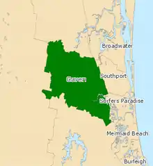 Gaven /ˈɡeɪvən/ is an electoral district of the Legislative Assembly in the Australian state of Queensland. It was created out of the former district of Nerang and the southern segment of Albert in the 2001 redistribution, and encompasses the northern growth corridor of the Gold Coast. The current Member of Parliament is Meaghan Scanlon of the Labor Party.[1] It is currently the only Labor-held seat on the Gold Coast.